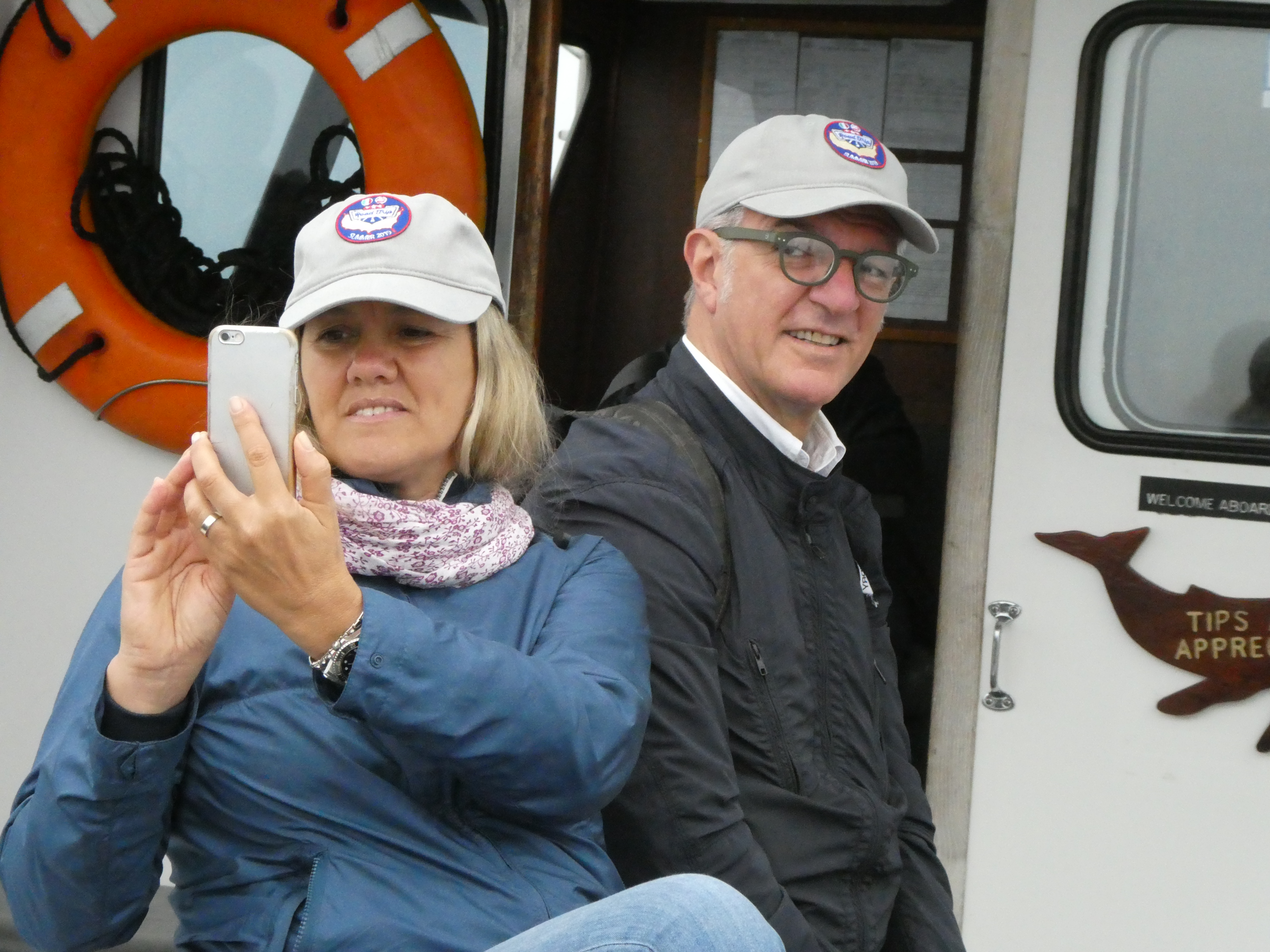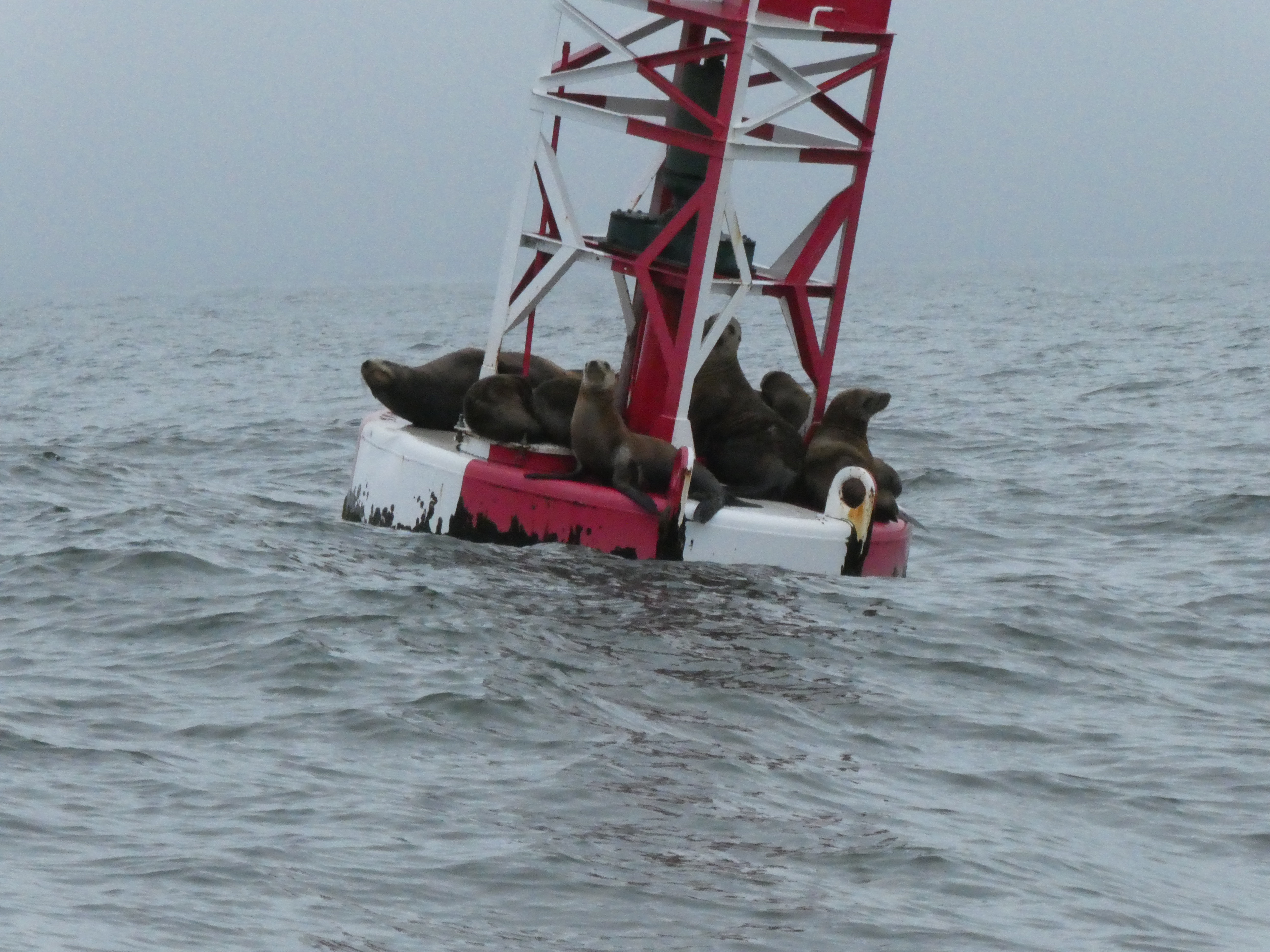 LE BALENE – ci svegliamo presto e alle 8.30 salpiamo dal moletto di Morro Bay sulla Freedom, una barca abbastanza grande che ci porterà a largo, nell’Oceano, nel tentativo (speranza?) di vedere le balene. Il comandante Kevin (un tipo curioso, cotto dal sole) e i suoi ragazzi ci raccontano che nell’ultima settimana ne hanno viste 7-8 al giorno. Il tempo è brutto, coperto, c’è nebbia e fa un po’ freddo; ma pare che per vederle questa sia una condizione migliore del sole pieno (meno sole, meno vento, mare meno increspato). Usciamo dalla baia, lasciandoci alla dx The Rock, quasi una montagna, che vigila l’ingresso della baia stessa, e andiamo verso il largo. Vediamo leoni marini, fochette, pellicani, girovaghiamo un po’….qualcuno (nessuno di noi) comincia a sentirsi male (beh, il mare è mare). La faccio breve: in 3 ore di escursione ne abbiamo avvistate 12-14, molte vicinissime alla Freedom, un paio hanno fatto il tradizionale (e spettacolare) salto fuori dall’acqua un po’ in distanza. Difficile riuscire a fotografarle al volo, ma in qualche modo ce l’abbiamo fatta. Torniamo molto soddisfatti. Mangiamo un boccone, carichiamo le macchine e partiamo per San Francisco.