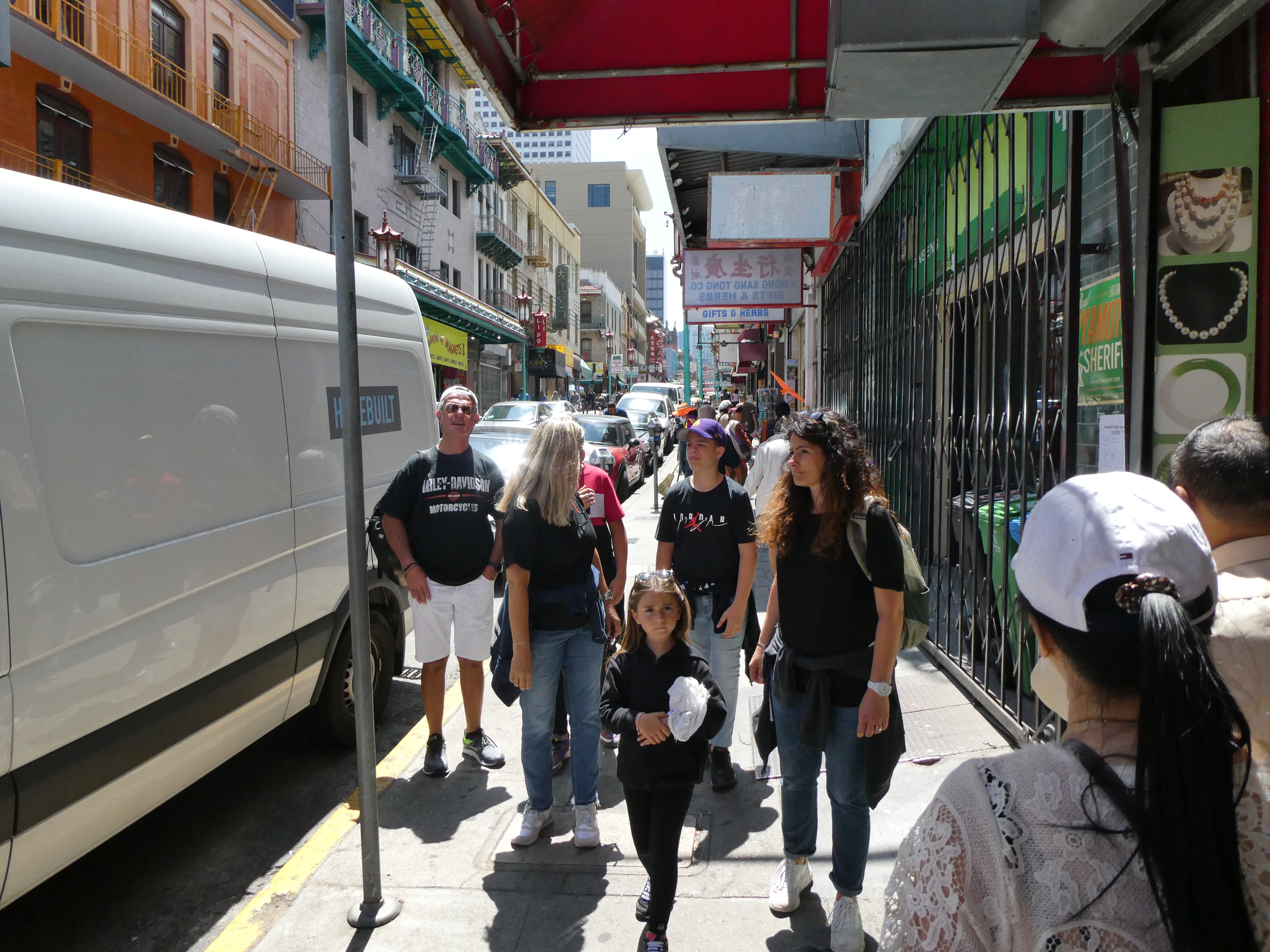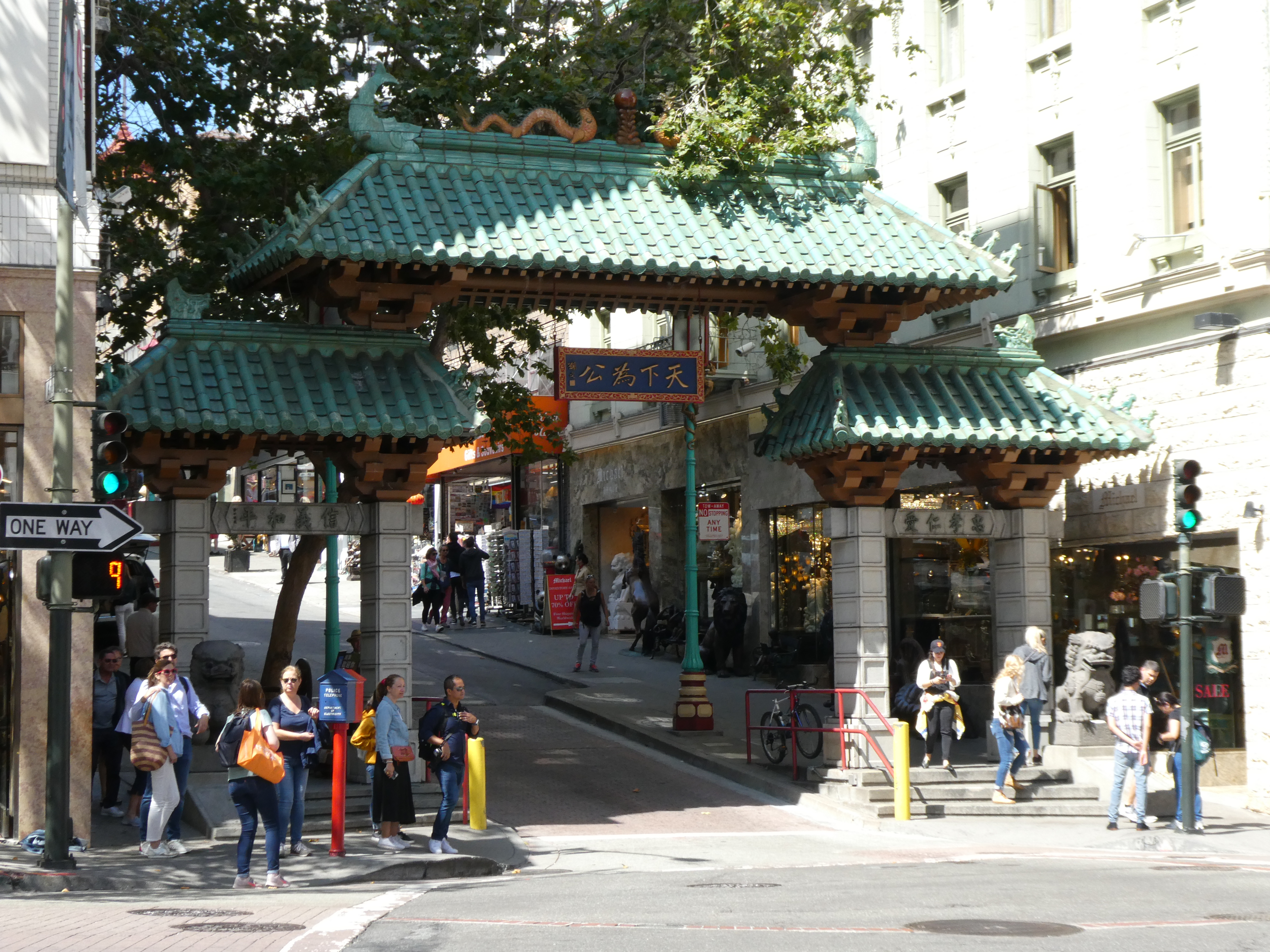 CHINATOWN – quasi sicuramente il più vecchio insediamento asiatico negli USA, questa è la comunità cinese più numerosa fuori dalla Cina. Si entra dal Dragon’s Gate e si cammina per blocchi e blocchi, lungo i marciapiedi negozi di cineserie varie; alcuni, con scritte ed insegne solo in cinese, vendono strane radici secche, pesci vari essiccati, medicinali cinesi, cose tutto sommato a noi sconosciute ed incomprensibili. Alcuni vendono accessori (farlocchi) per smartphone, altri statue di varia foggia e misura (improponibili). Mangiamo in un buon ristorante, consigliatoci da una negoziante; cibo buono, come spesso si fa, dai cinesi, condividiamo piatti vari.