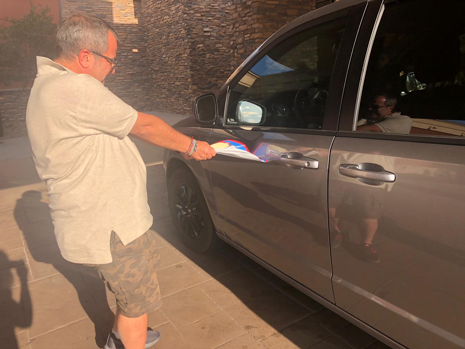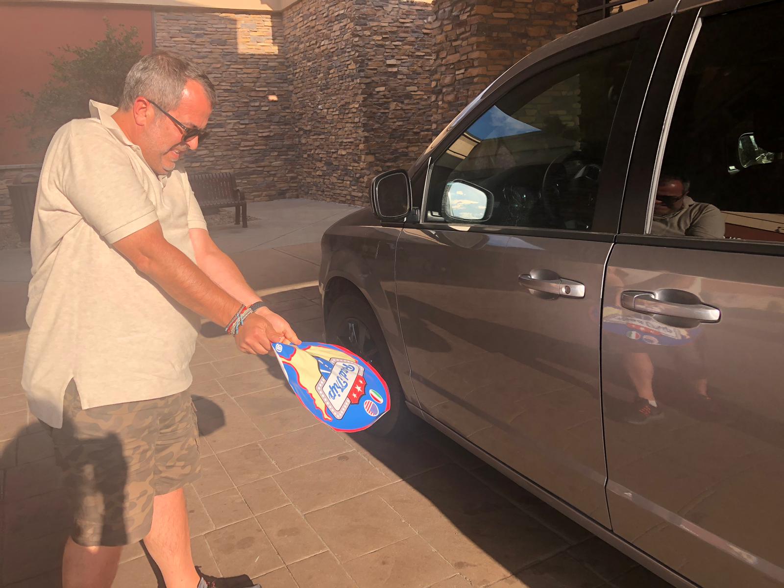 RENTAL CAR RETURN – attraversiamo la città, trovando molto traffico, e ci dirigiamo verso il nostro albergo che, scientemente, abbiamo scelto vicino all’aeroporto, perchè domani mattina entrambi i voli partono molto presto. Oltretutto dobbiamo lasciare le macchine, i nostri amati e valorosi minivan, stasera, così da toglierci una scocciatura domattina. La cerimonia di distacco degli adesivi dalle portiere è toccante e commovente, e viene immortalata con foto.