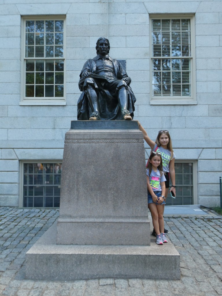 Il campus principale (come in molti altri campus americani, ci sono poi altri buildings universitari, sparsi tutto intorno) è composta da edifici in mattoncini rossi, alcuni molto vecchi, austeri, altri evidentemente più recenti. C’è poco movimento, un po’ di turisti, qualche studente, chiaro che oggi non è una giornata campale. Facciamo un bel giro, vediamo la statua che si presuppone sia di John Harvard (perché di lui non esistono immagini, sono andate tutte distrutte in un incendio), si resipra un’aria molto “ufficiale”, più che e a UCLA, come se questa fosse una università diversa, superiore, più seria…..mah!? Andiamo poi allo store; è enorme, c’è di tutto, ma veramente qualsiasi cosa, anche per i nostri amici a 4 zampe ! Poco lontano c’è anche lo store del MIT, rapida visita anche a quello e via.